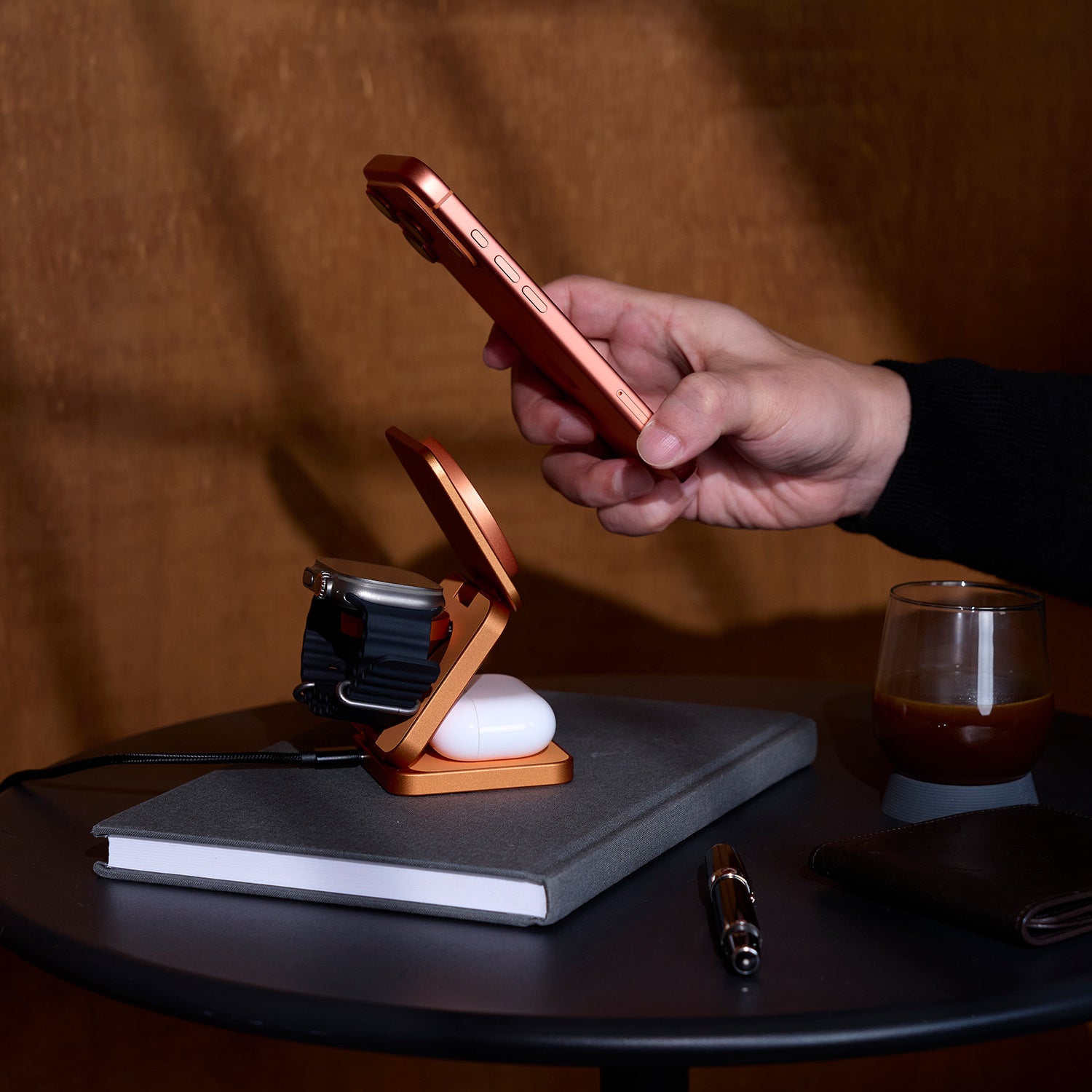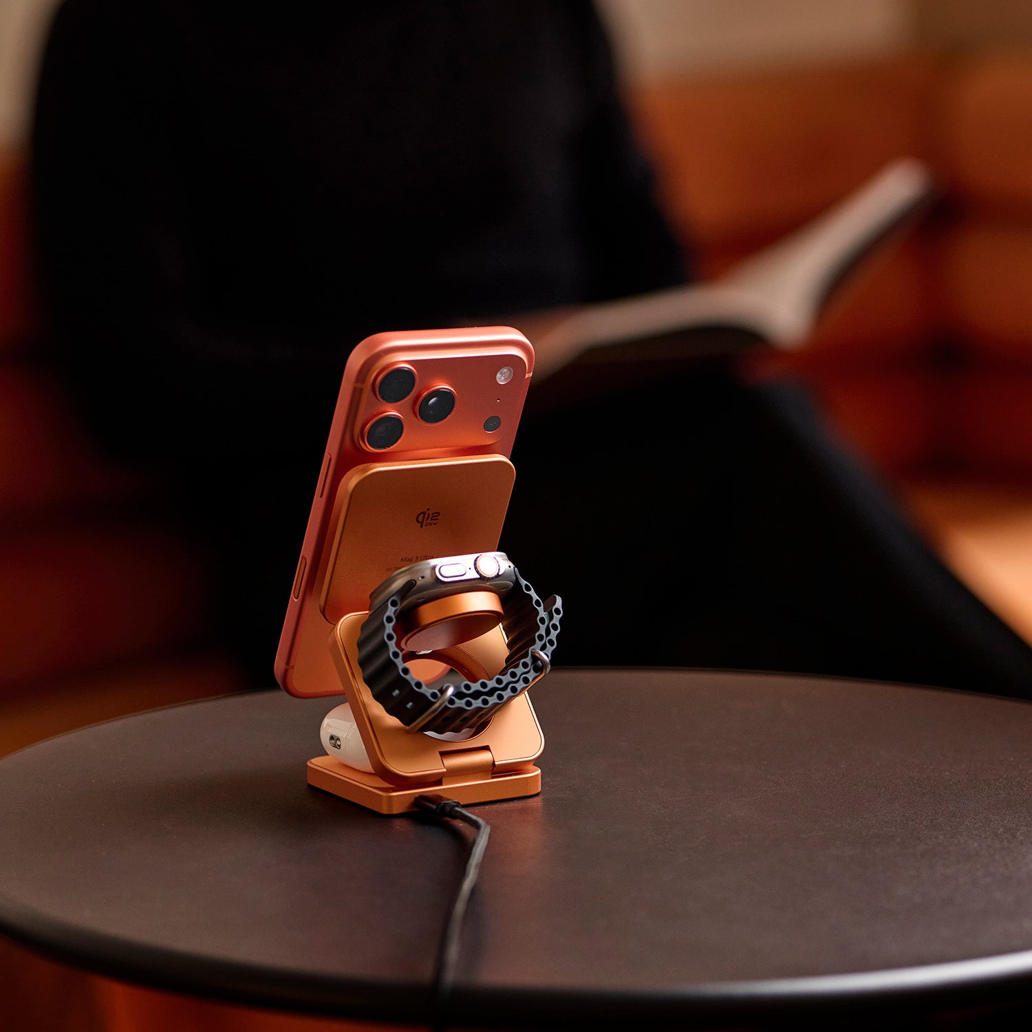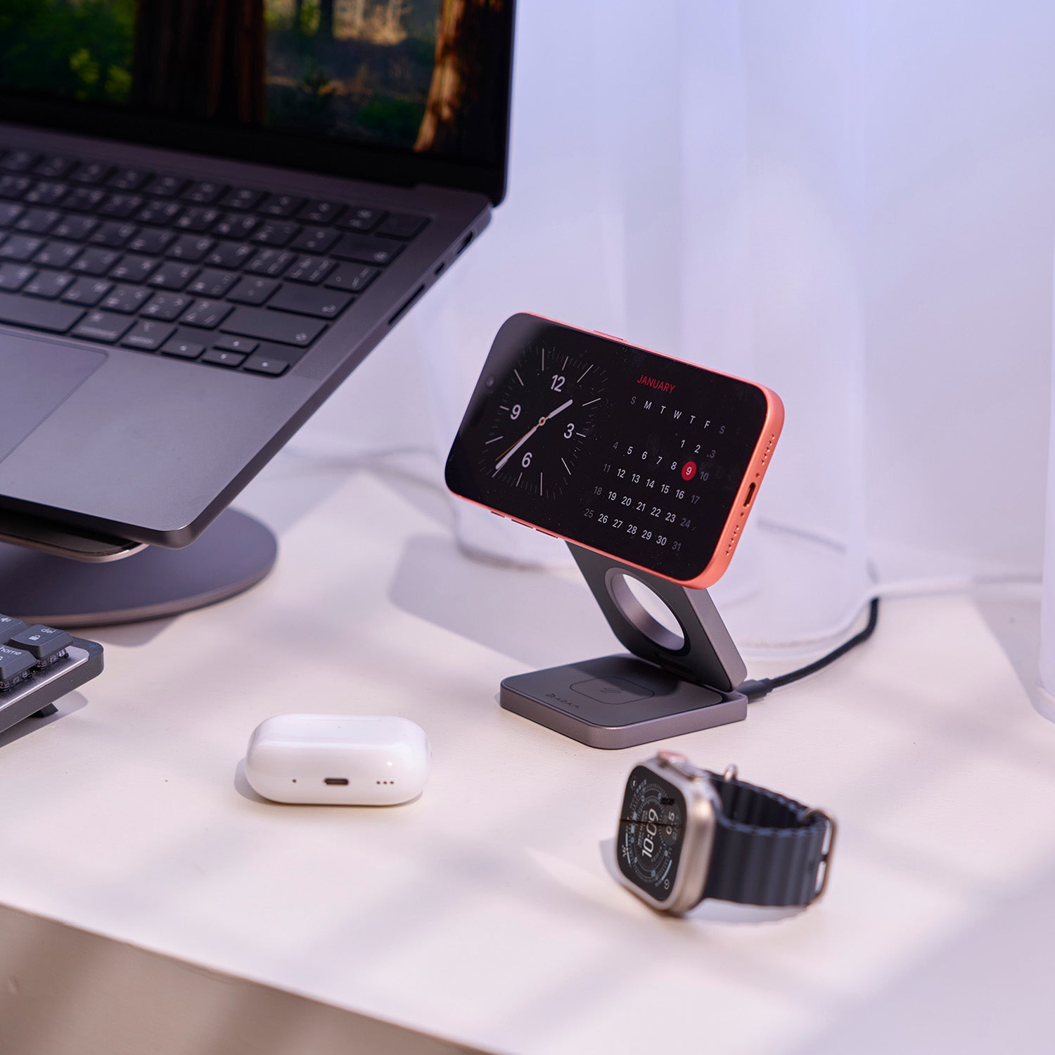 ◼︎ 折疊收納好攜帶,兼具時尚及功能性的三合一設計,即時為 iPhone、AirPods 與 Apple Watch  提供無線充電。